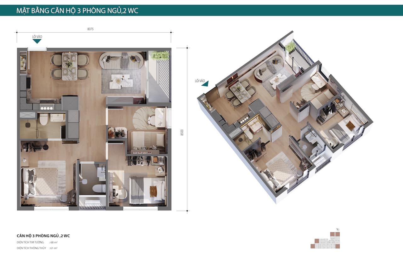 - 3 phòng ngủ: Phù hợp gia đình đa thế hệ